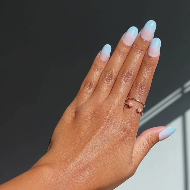 Cool down with this dreamy ombré blend of pastel blue and pink—sweet, subtle, and totally chill.