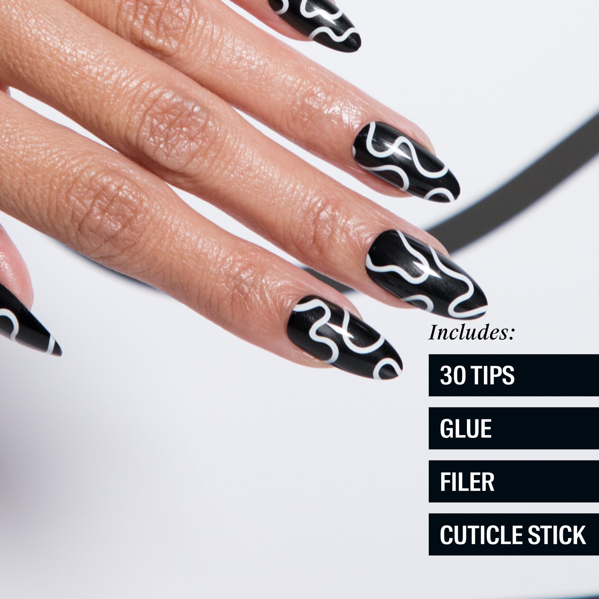 Made with high-quality materials, Chill Tips are comfortable and easy to use from start to finish. The included tools allow you to fully customize the tips to your nail, while the gentle, non-damaging glue secures everything in place for results that have the look and feel of a classic gel mani.