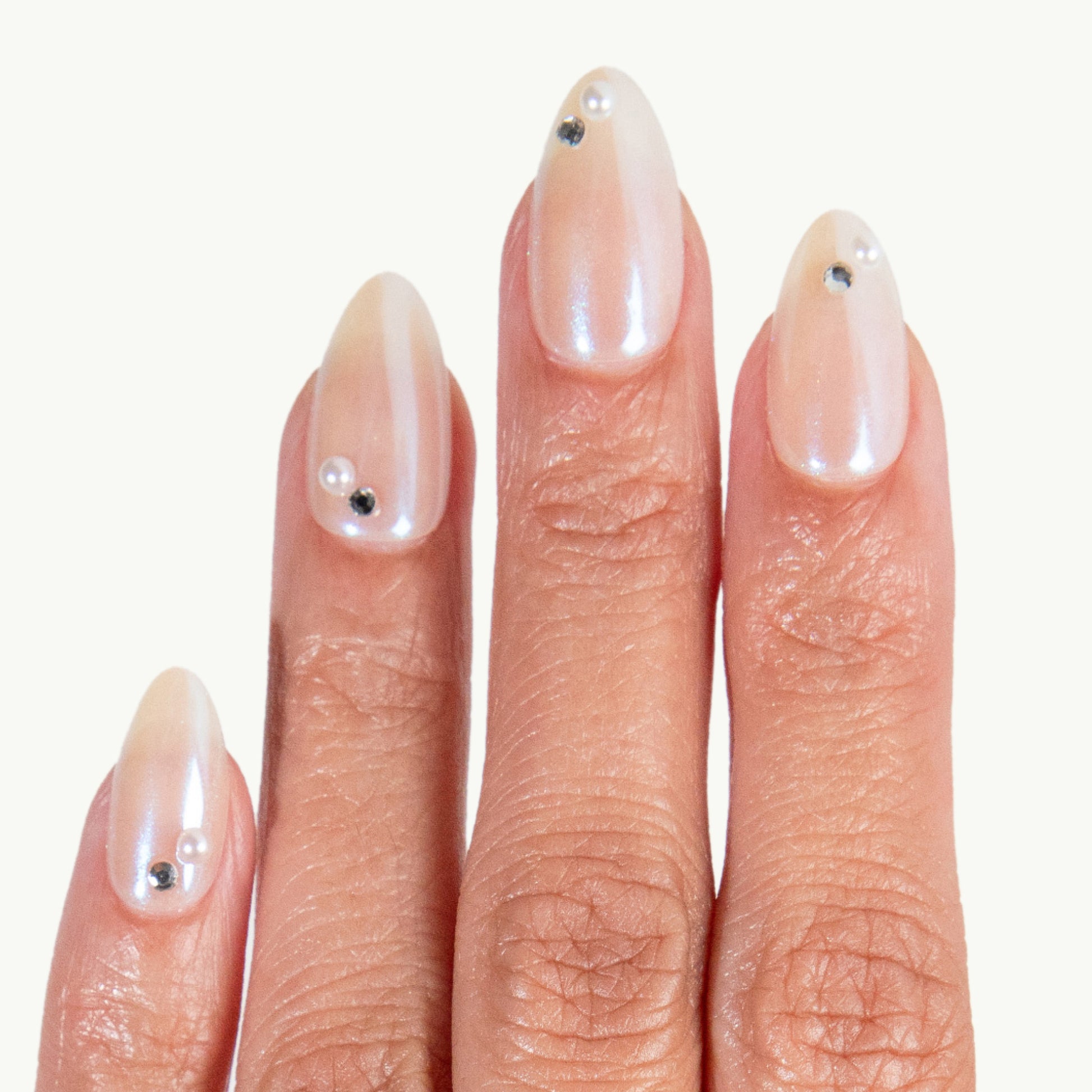 Choose the right press-on nail for each finger, adjusting size and shape as needed.