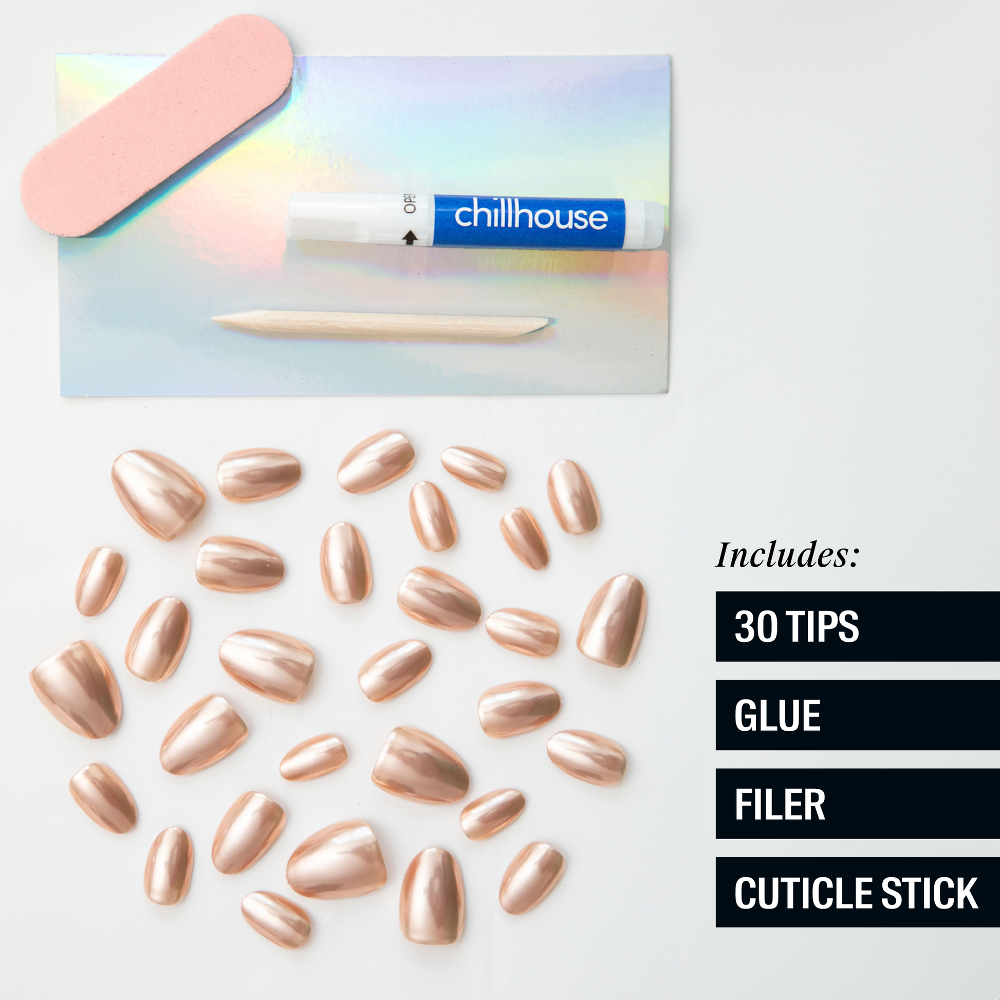 Application VideoTo apply Chill Tips press-on nails, start with clean, natural nails and prep by buffing and pushing back cuticles.