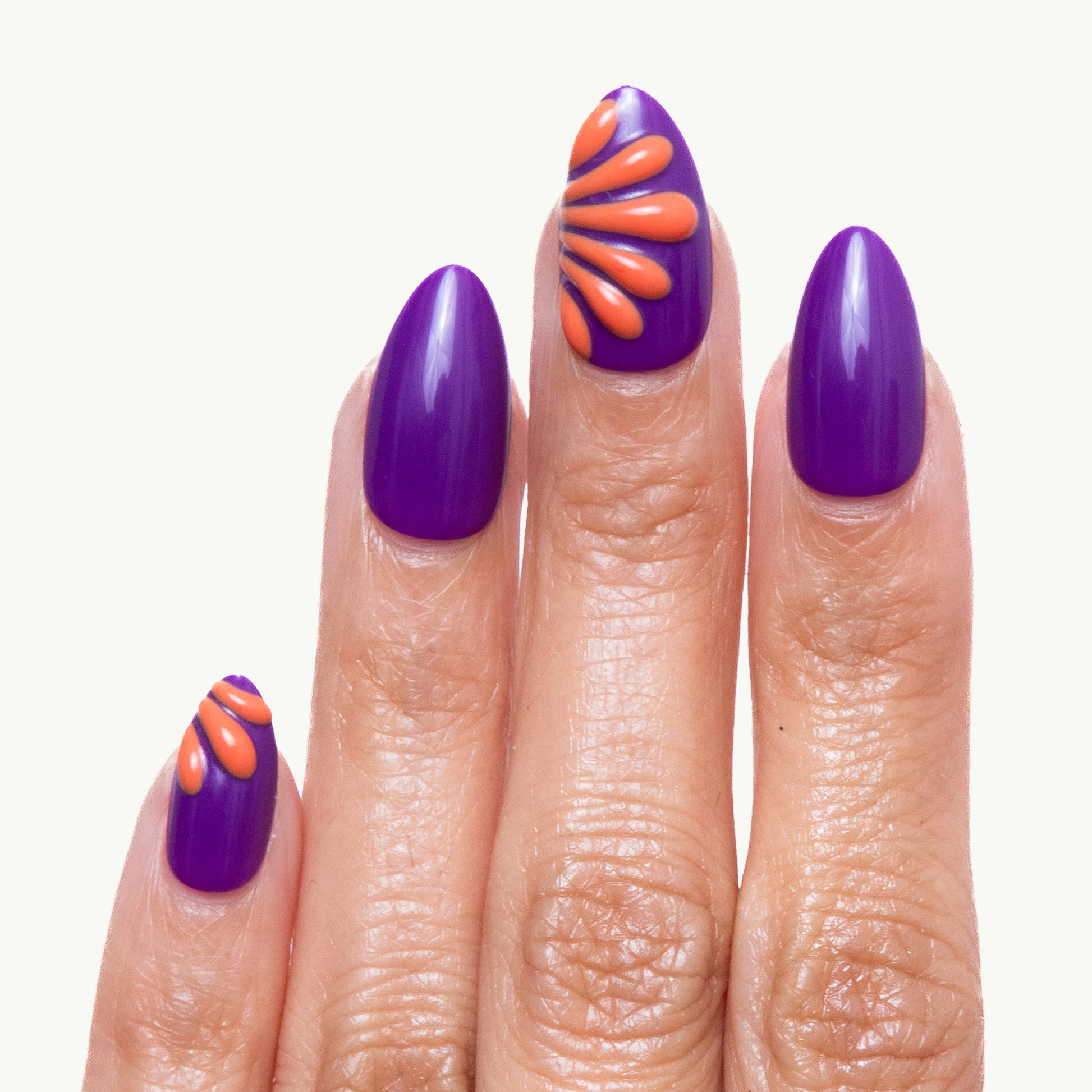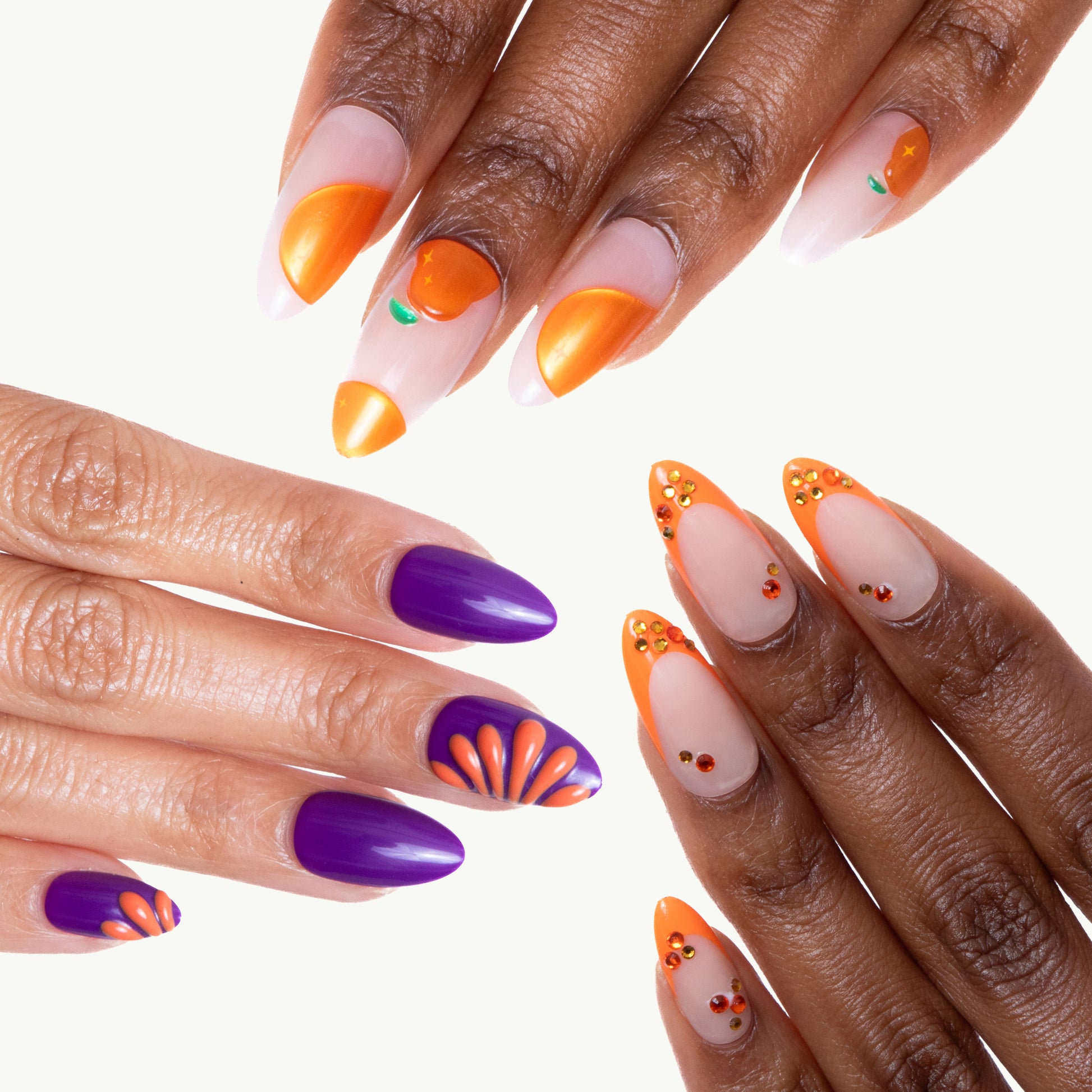 Choose the right press-on nail for each finger, adjusting size and shape as needed.