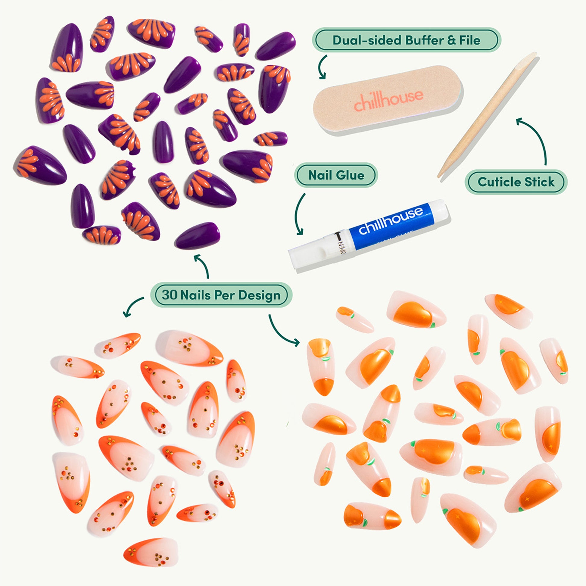 Application VideoTo apply Chill Tips press-on nails, start with clean, natural nails and prep by buffing and pushing back cuticles.