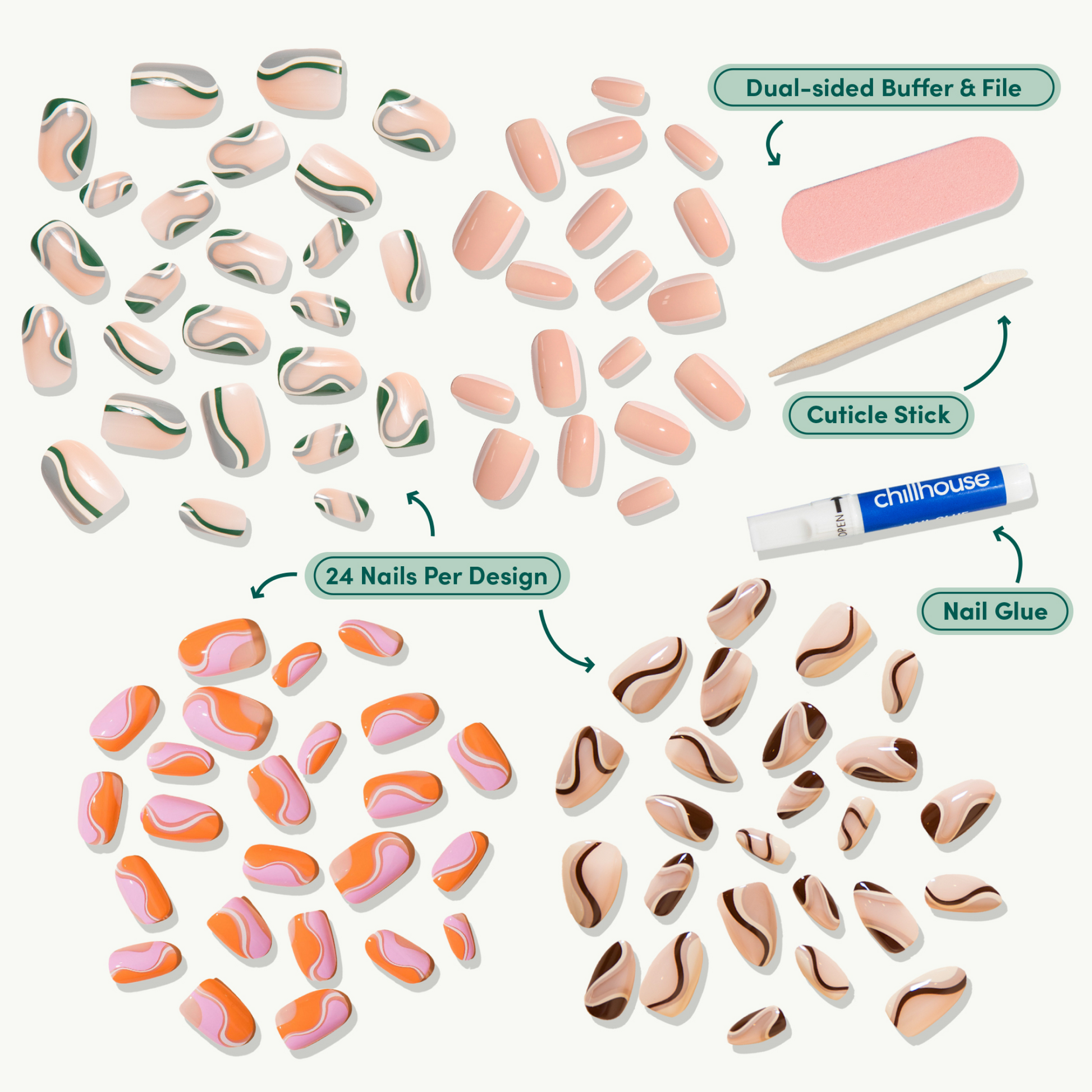 Modern press-on nails. Our signature self-care treatment for a chiller you.