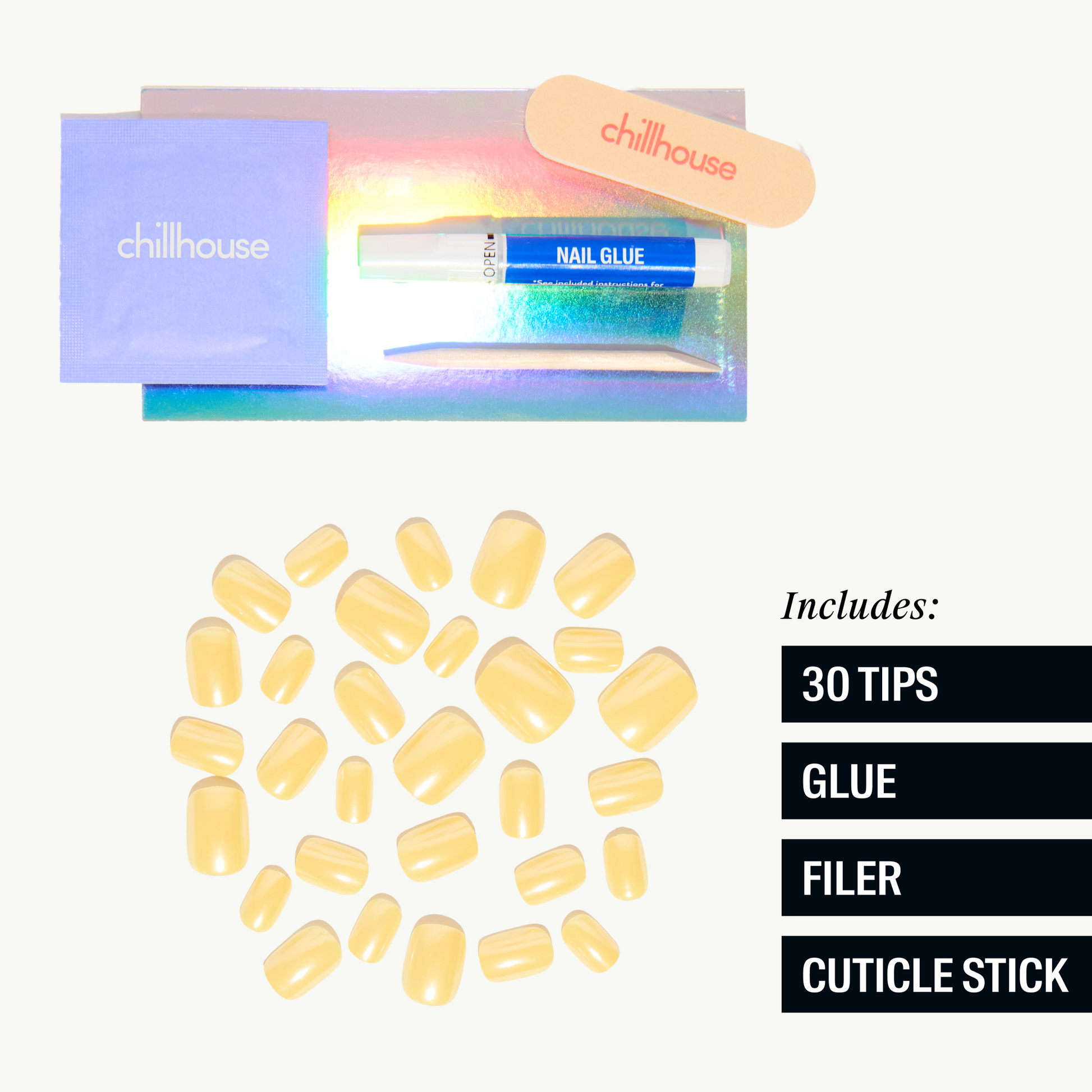 Application VideoTo apply Chill Tips press-on nails, start with clean, natural nails and prep by buffing and pushing back cuticles.