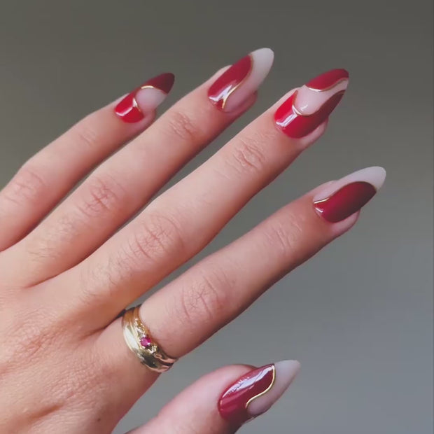 A deep poppy burgundy wave design that reads vintage, moody, and effortlessly cool. Think: library flirt, perfectly polished.