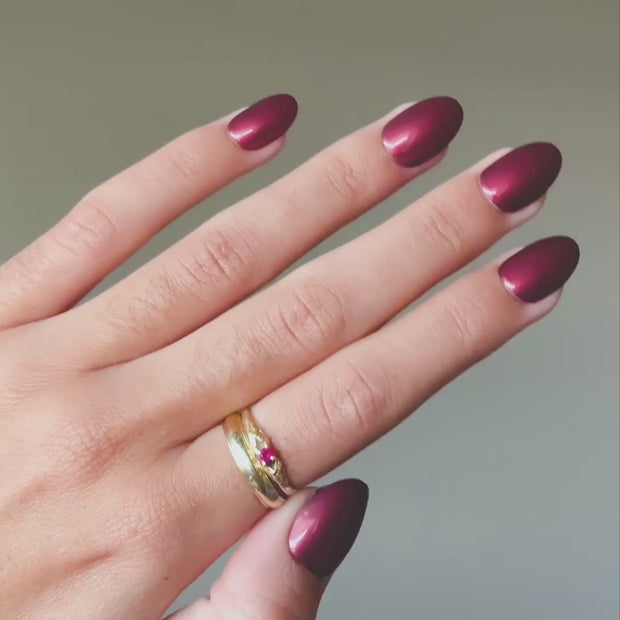 Deep, shimmery wine red with a sultry finish that steals the spotlight.