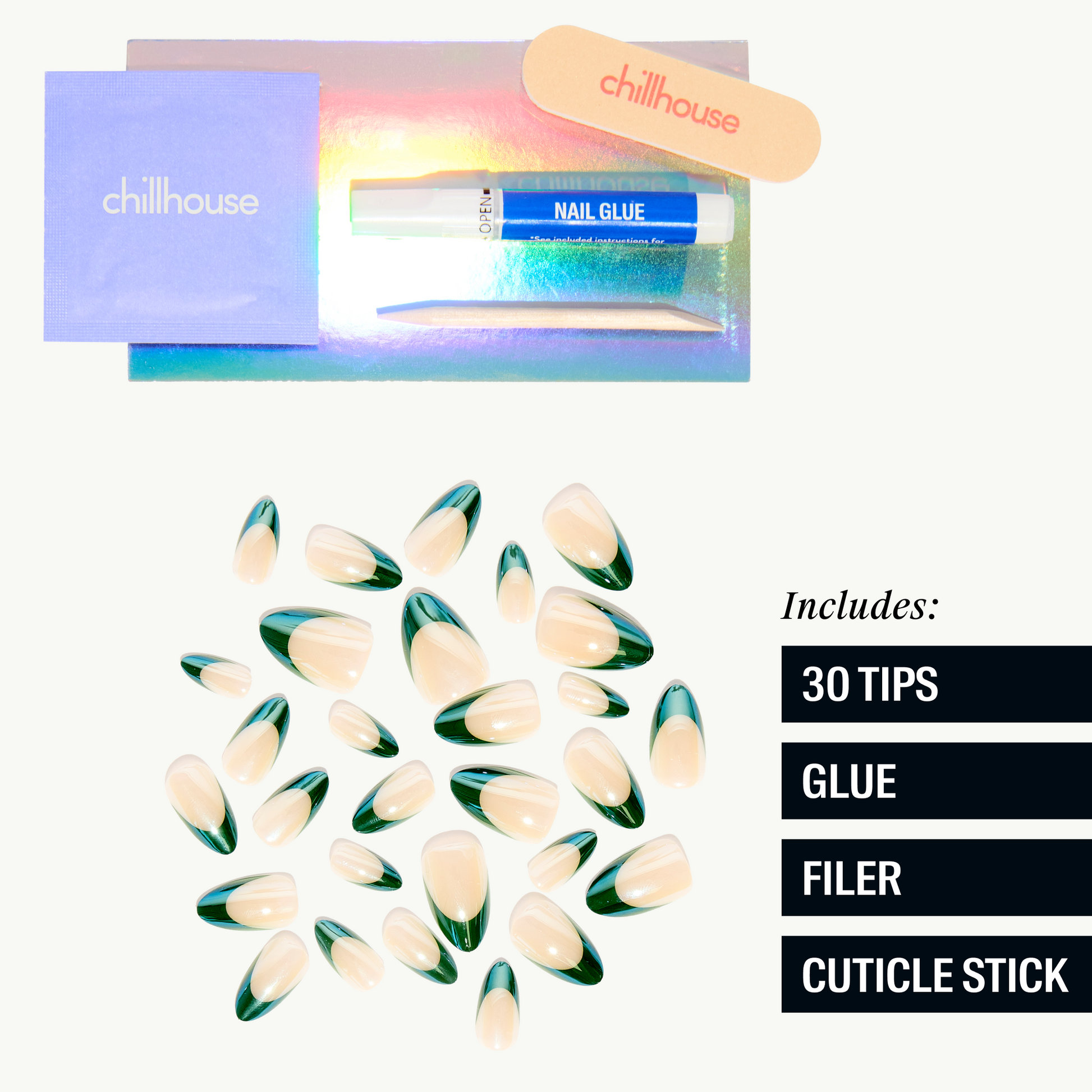 Application VideoTo apply Chill Tips press-on nails, start with clean, natural nails and prep by buffing and pushing back cuticles.