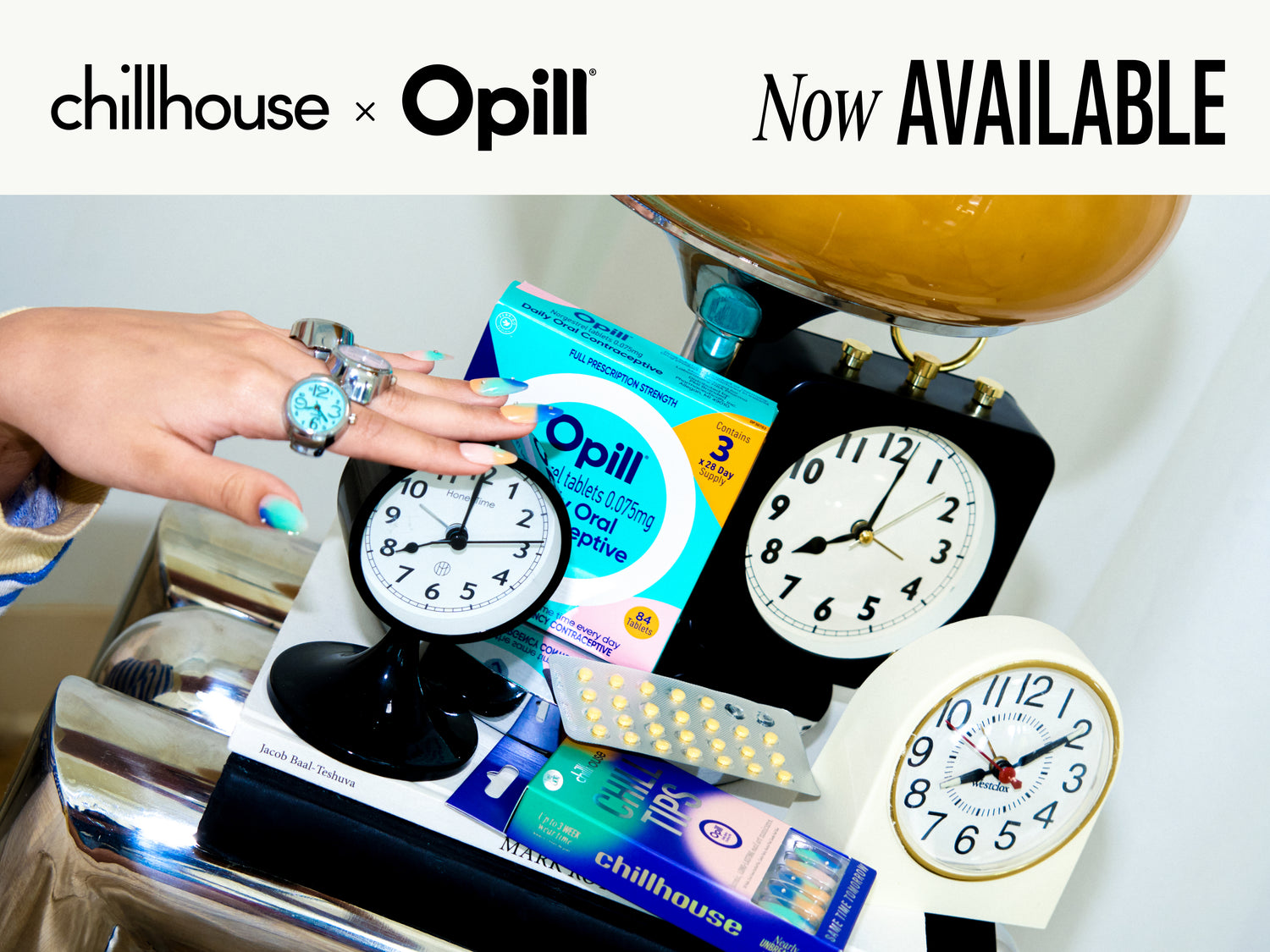 What’s in your bag before you head out the door? Only the essentials. Phone, keys, confidence and Opill + Chill.
