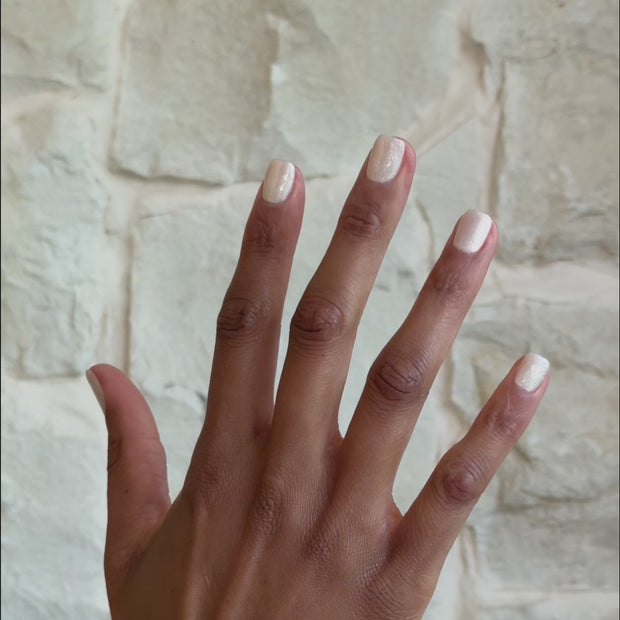 A sparkling neutral with soft golden hues that toast to effortless style.