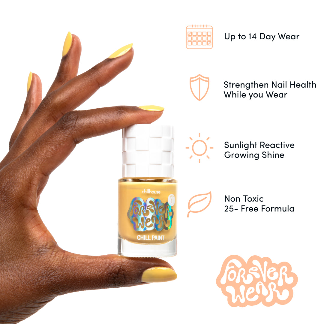 Forever Wear Chill Paint MUST be paired with our Magic Finish top coat. They work together to activate and cure your mani ensuring a long lasting, chip resistant, and nourishing effect.