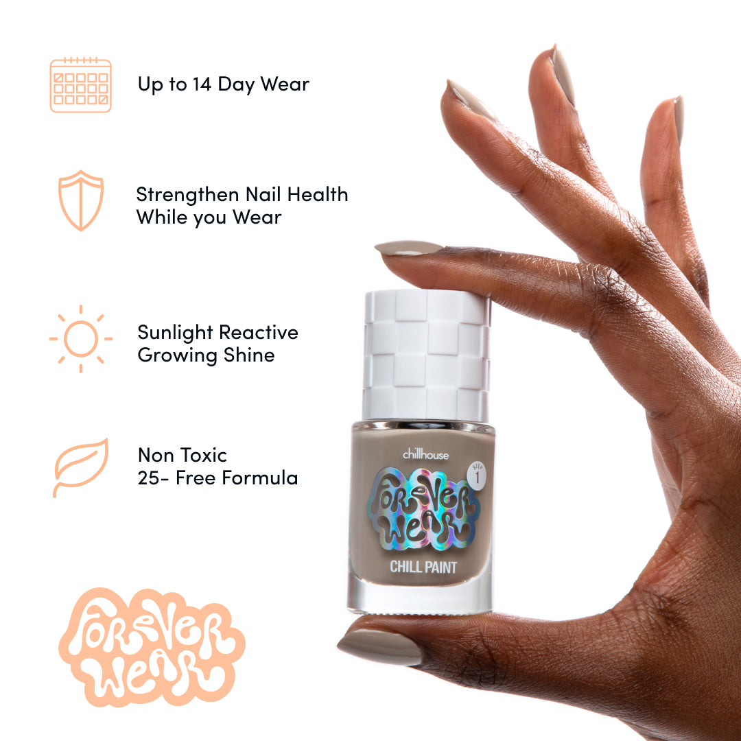 Forever Wear Chill Paint is reactive to our innovative Magic Finish Top Coat formula, curing your mani over time.