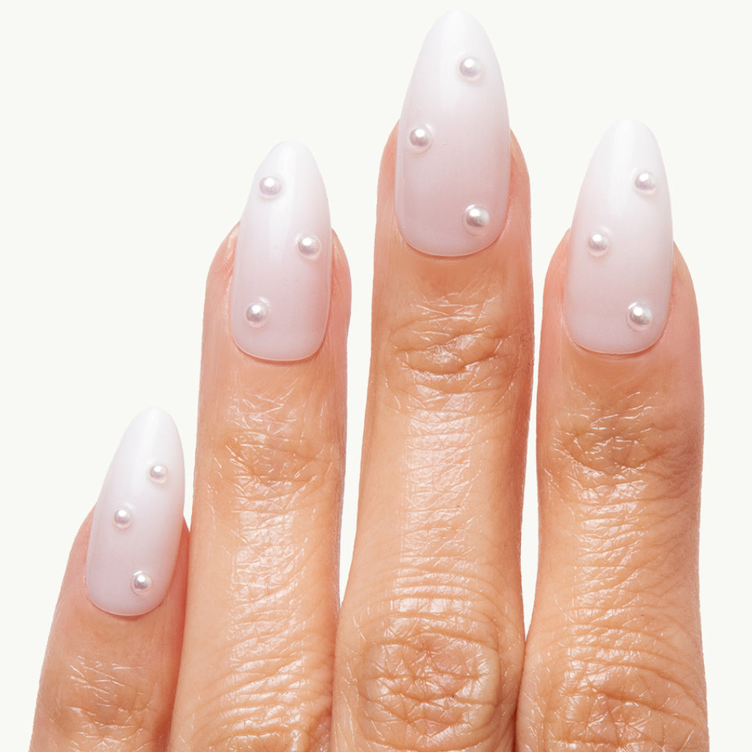 Silver pearl tips with dainty accents—perfect for brides, besties, or a bubbly moment.