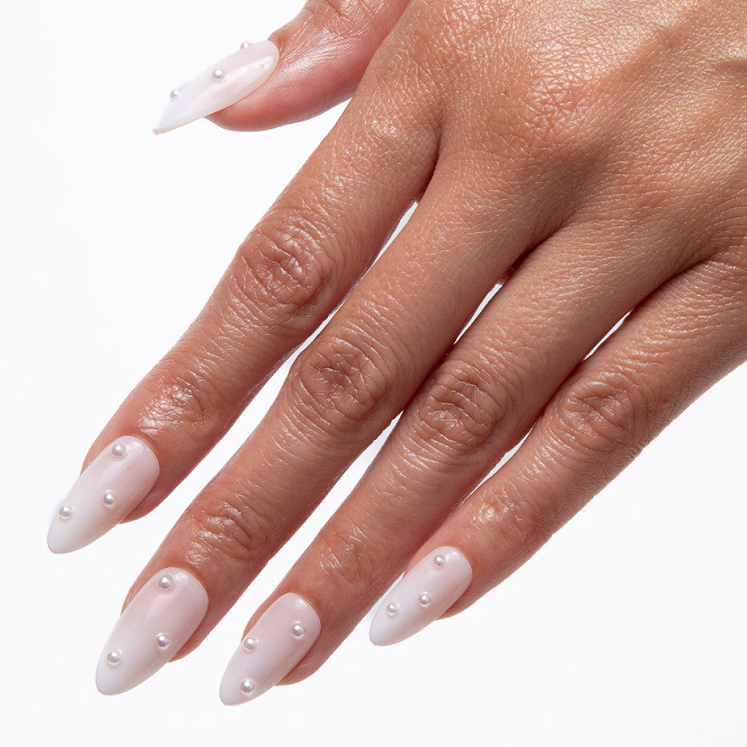 Start with clean, natural nails. Gently buff and push back cuticles for better wear.