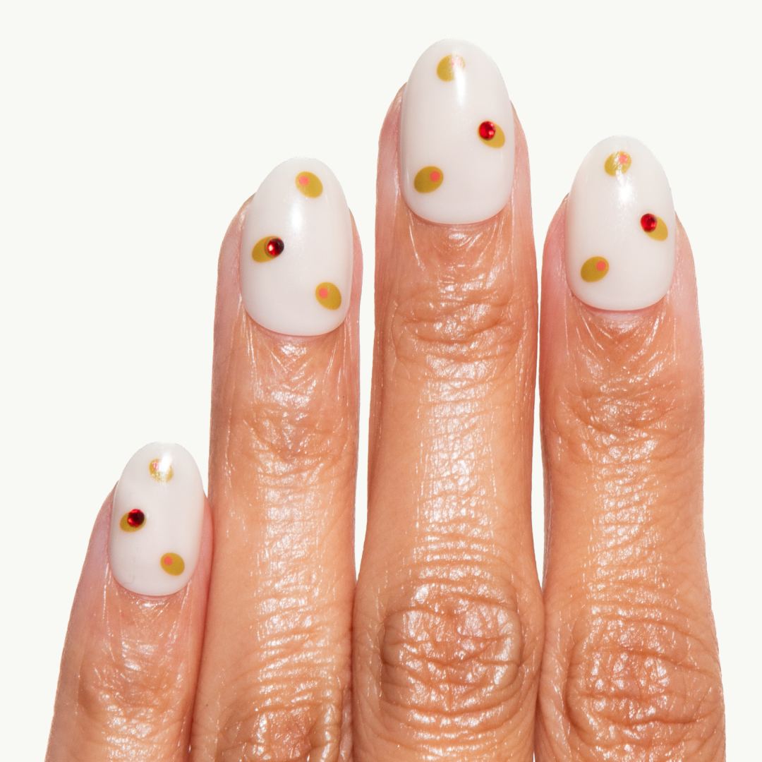 Choose the right press-on nail for each finger, adjusting size and shape as needed.