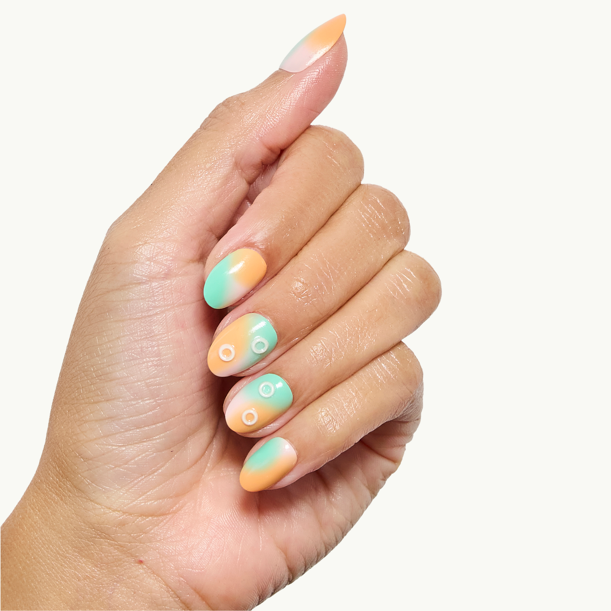Choose the right press-on nail for each finger, adjusting size and shape as needed.