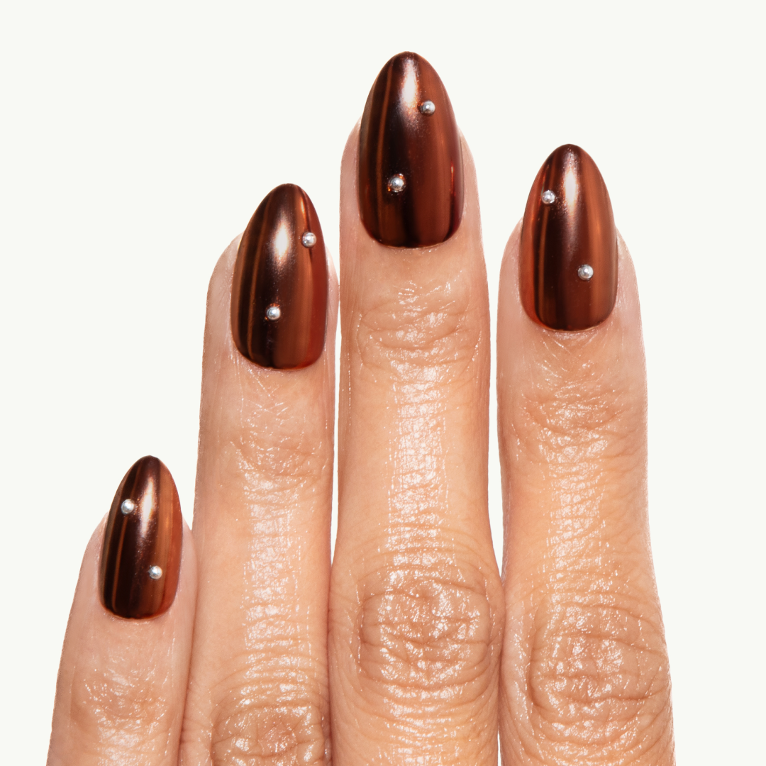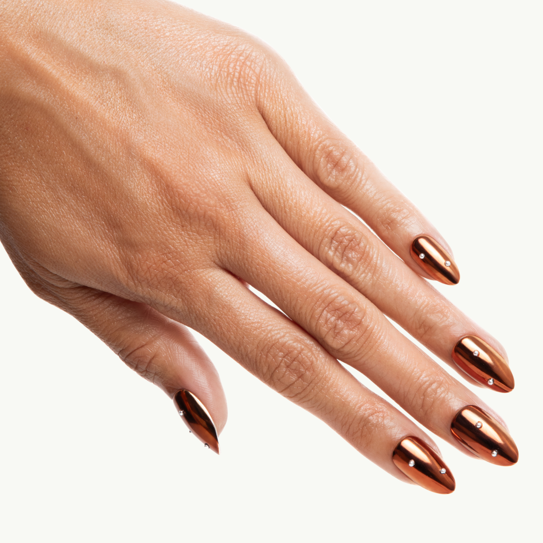 Choose the right press-on nail for each finger, adjusting size and shape as needed.